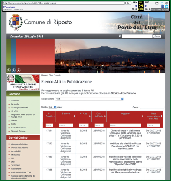 Figura 1. Pagina dell’Albo pretorio online del Comune di Riposto (provincia di Catania, Italia